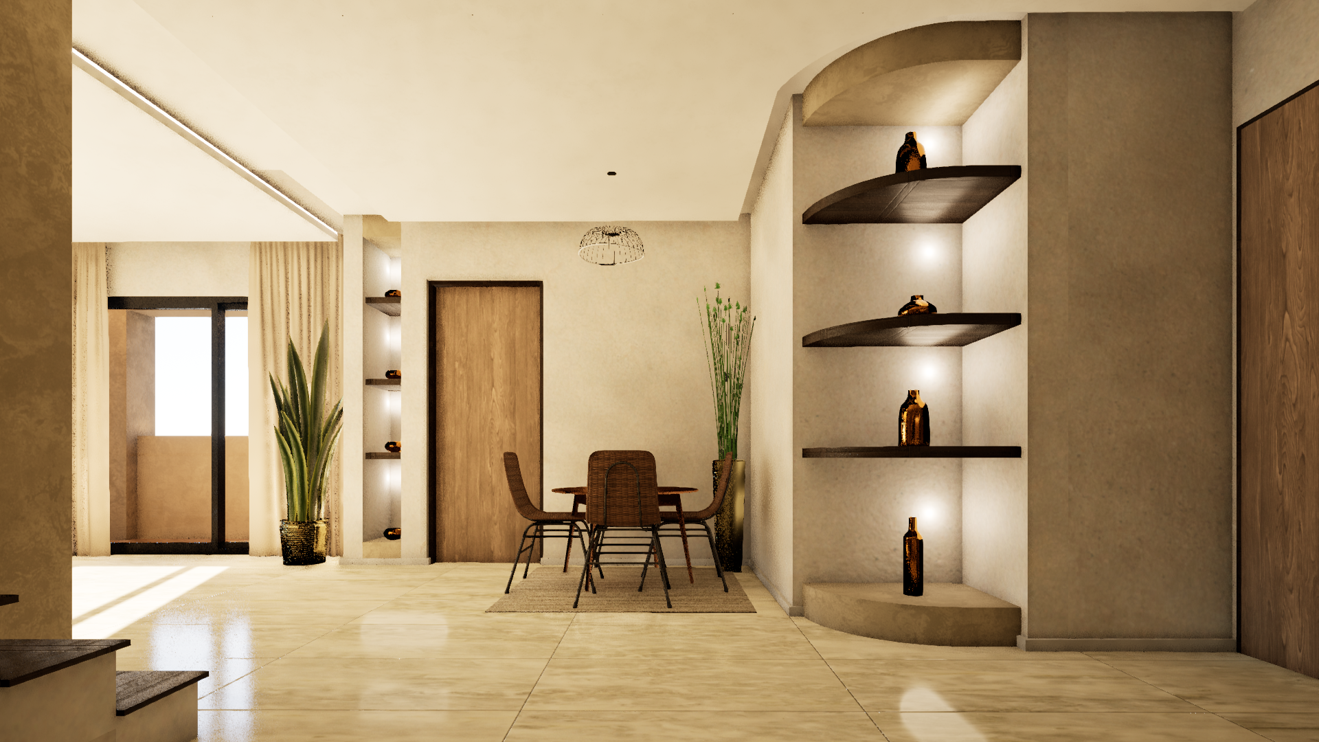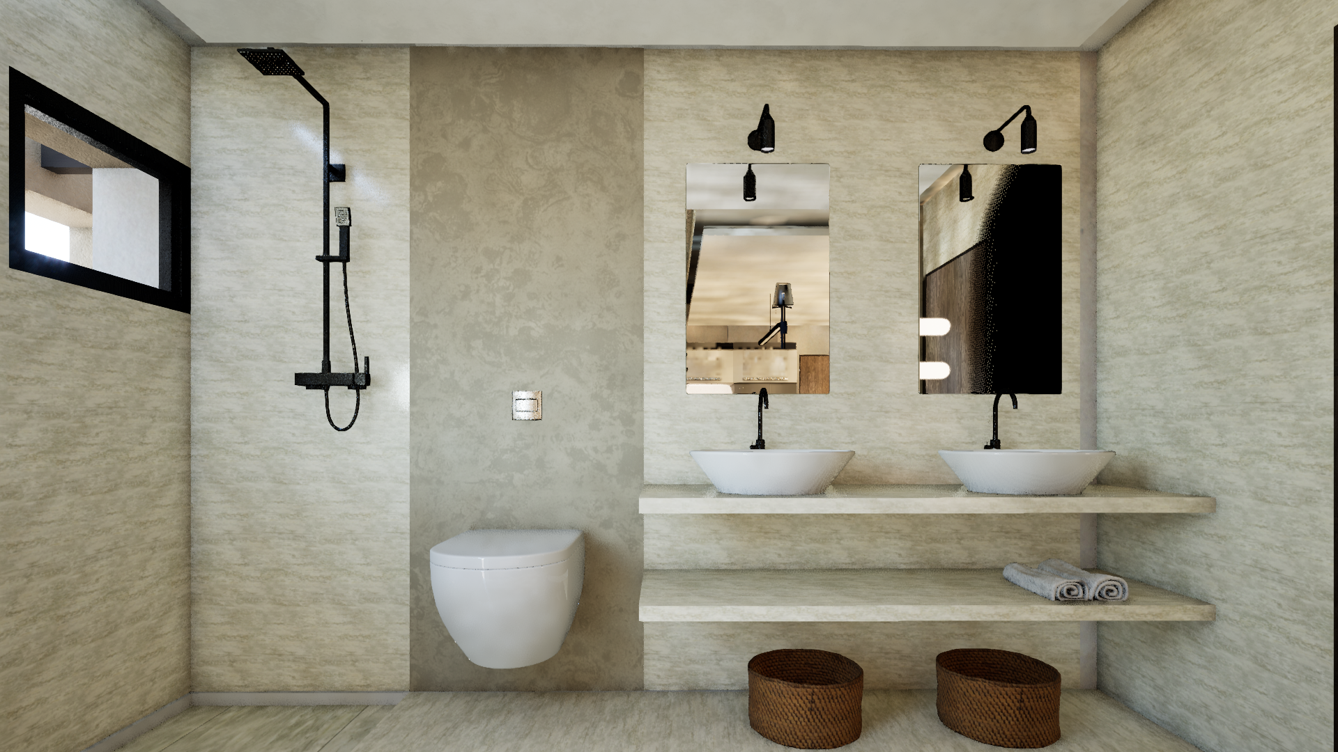 Les tons neutres et les matériaux naturels tels que la pierre, le bois et le verre créent une atmosphère apaisante et contemporaine, où chaque détail contribue à l’équilibre général du projet.