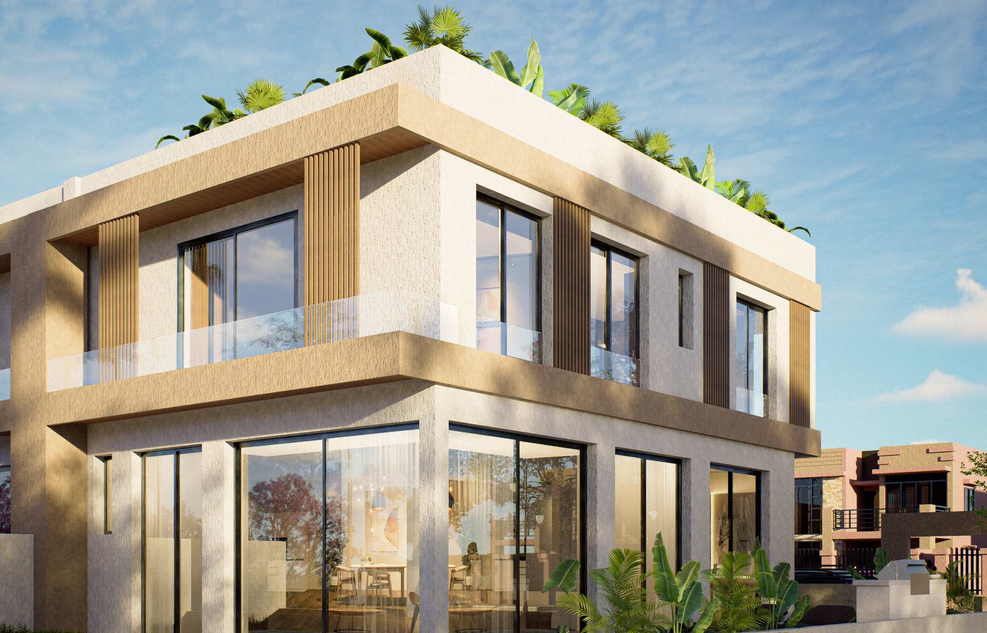 Cette villa jumelée située au lotissement Riad Marrakech se distingue par une architecture contemporaine aux lignes épurées et aux matériaux naturels.